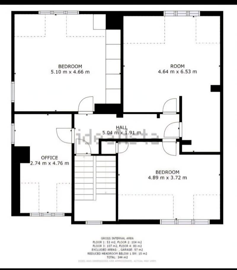 Planta 2 (Ático): Cuatro estancias versátiles actualmente usadas como habitación, estudio, gimnasio, sala de juegos.